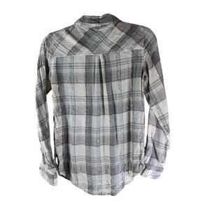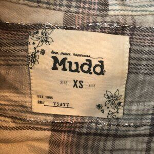 Mudd Womens Plaid Flannel Button-Up Shirt Metallic Gray White Silver XS