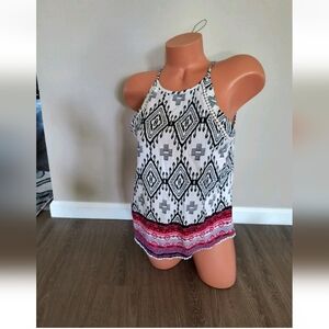 Mudd Women's Tank Top Tribal Print Scalloped Fringe Sleeveless Top Size Medium