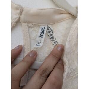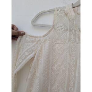 Mudd Women's Top Blouse Lace Lined Cold Shoulder Key Hole Back Ivory Size Medium