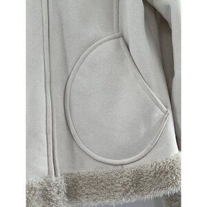 Mudd Womens White Faux Suede Hooded Jacket Faux Fur Trim & Zip Closure Medium