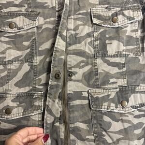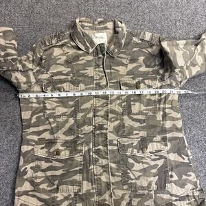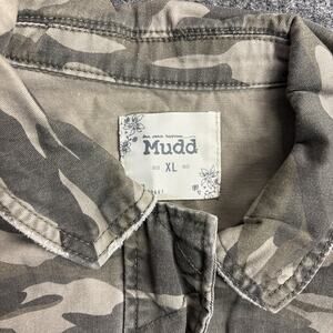 Mudd Womens XL Camo Denim Military-Style Distressed Jacket Pockets