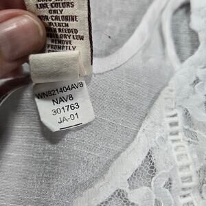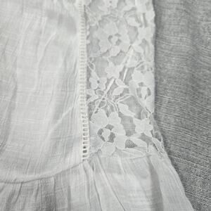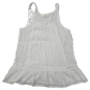 Mudd Womens XS White Sleeveless Top Sheer Y2K Whimsigoth Country Summer EUC Gauzy Sheer front with Lacy Floral Open Sides Ruffle Detail at hem. Prairiecore Concert Festival Lightweight College Retro 2000's Teen