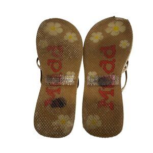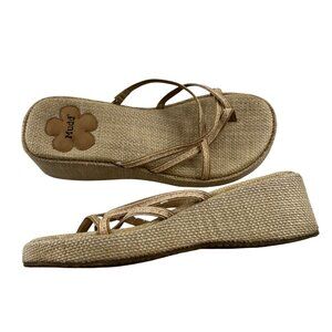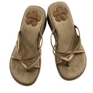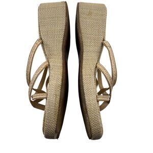 Mudd Woven Wedge Strappy Sandals Tan Textured Fabric Cross Strap sz 6.5 Y2k