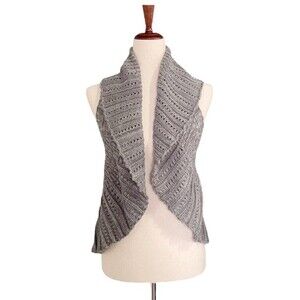 Mudd vintage shawl collar sweater knit vest, peplum flounce detail on the back, full waterfall shawl in the front. Great worn flowy or with a wide belt.