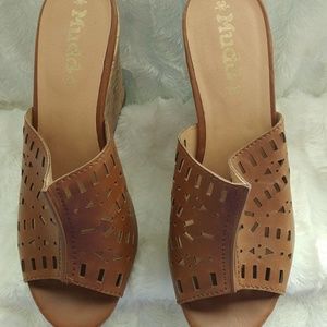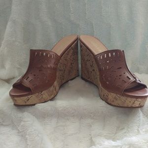 Tan sandal with cork wedge. Never worn. Bought them at kohls. Great condition.