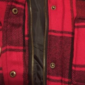 The jacket has buttons along the the zipper to keep it closed. There are also buttons by the pockets.