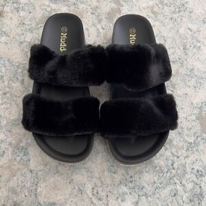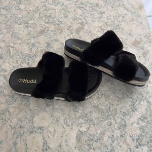 Mudd size 10 fur rhinestone lined platform double strap sandals Only worn to try on