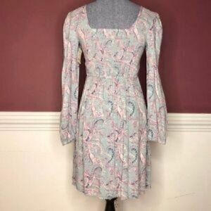 **New with tag** Mudd paisley print square neck long sleeve midi dress with faux button closure, elastic stretch in back