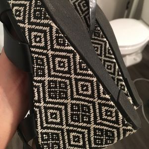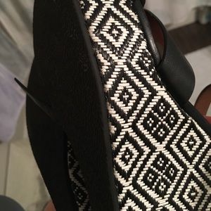 Mudd black & white 'aztec' pattern wedge. Size 7. Wedge heel is 4" . Very lightly worn, looks pretty much new!