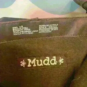 Mudd women’s distressed knee-high boots size 8 medium chocolate brown suede suede with side zipper and zigzag design with buckles on opposite side 2.5” heel, NWOT in excellent condition