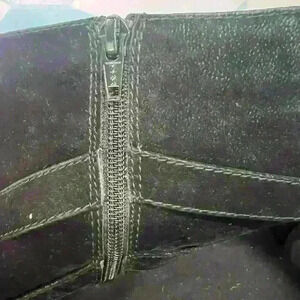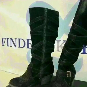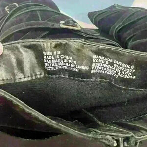 Mudd women’s knee-high boots size 8 medium black suede with side zipper and zigzag design with buckles on opposite side 2.5” heel, NWOT in excellent condition
