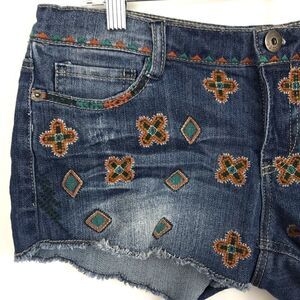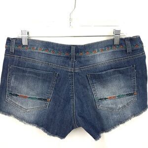 Mudd Boho Vibe Embroidered Dark Wash Denim Shorts