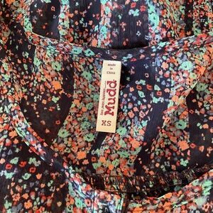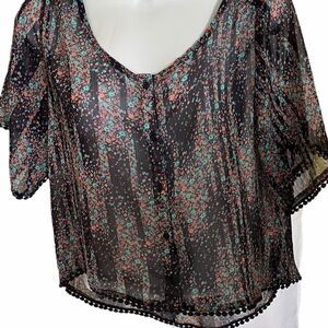 Pretty cropped sheer blouse by Mudd, size XS. Looks great over a cami or a swimsuit! Like new, perfect condition!