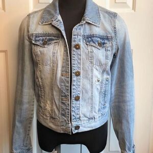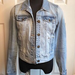 Mudd distressed Jean jacket. Great for fall. Good preowned condition. Size Medium Juniors. Measurements laying flat Armpit to Armpit 17.5, Length 19”, Sleeves 24”.
