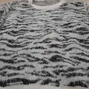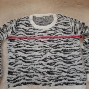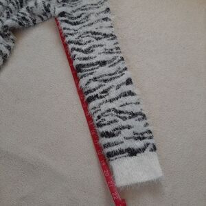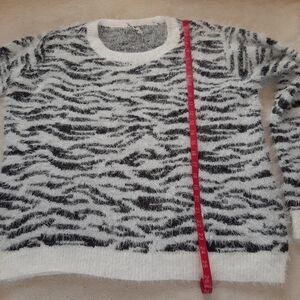 Pre-Owned Sexy FUZZY Animal/Zebra Patterned Print Crew Neck Long Sleeved warm sweater in great condition with plenty of life left. Approx measurements are pictured.