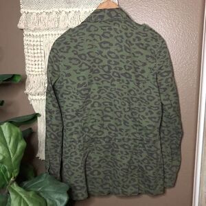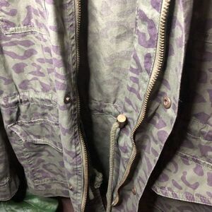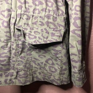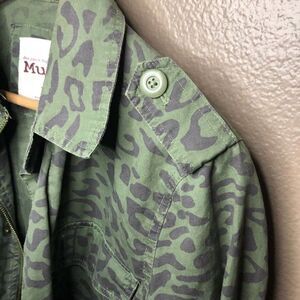 Mudd Green Leopard Utility Jacket Size Medium. Great condition. Front pockets with button snap closure. Internal drawstring for more customized fit around waist. Zip and button snap closure down front