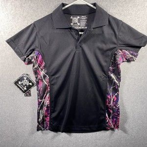 Muddy Girl Camo Black Polo Shirt Small Www.MoonshineCamo.com Polyesters Wicking