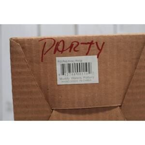 Muddy Waters Pottery Word Jar - Party Money - Green w/cork Top Handmade - New in original box - I've had this since about 2011 - never used was going to give as a gift.