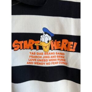 Mudi Men'sDonald Duck Polo Shirt Short Sleeve Stripe Black/White Size Medium