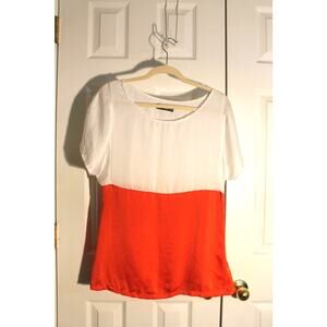 Mudo Collection Orange & White Colorblock SS Blouse sz L
