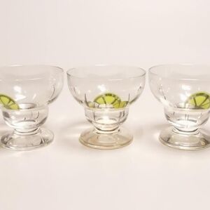 Mudpie 6-NWT Footed Stemless Margarita Recipe Clear Glass 4" Tall x 5" Diameter.
