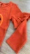 Ribbed orange with pumpkin and “trick or treat” embroidery. Ruffles on arm.