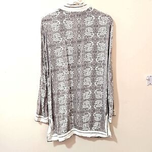 Mudpie Beach coverup in gray and white size M. EUC. Lightweight, fitting Rayon blend with ribbon trim detail. Boho Beach Coastal