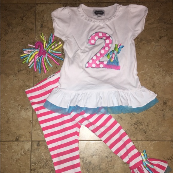 Mudpie size2 Ruffle Birthday Set with Matching Bow