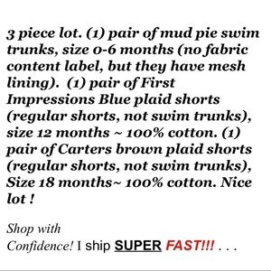 Mudpie Carters First Impressions Lot of Shorts Swim Trunks 0-6-12-18 months