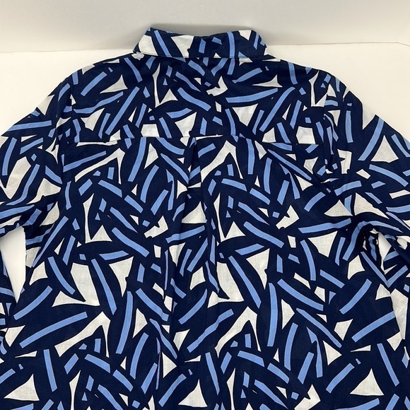 Mudpie Collins Cover Up Shirt Dress Tunic S Blue White Leaf Print Lightw…
