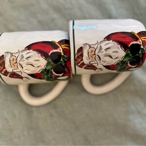 Festive mugs featuring Santa Claus. Perfect for holiday drinks. Set of two.