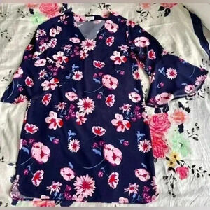 Mudpie Mila Pink and Navy Floral Print Sheath Dress Women’s Size Small