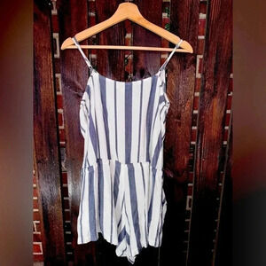 Mudpie Striped Blue & White Spaghetti Strap Romper Size Medium