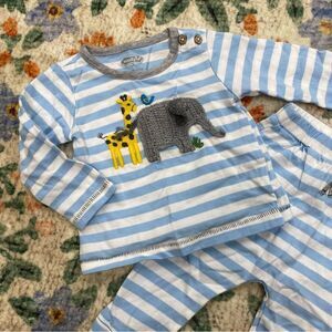 Mudpie Striped Blue Outfit 3-6 Months set elephant cotton