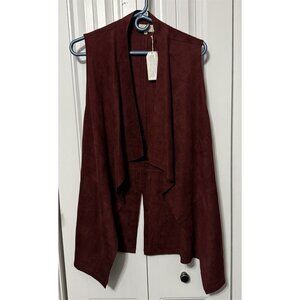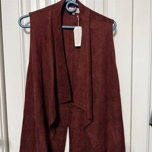 Mudpie Suede Vest Womens Small Burgundy New Long Flowy Duster