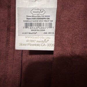 Mudpie Suede Vest Womens Small Burgundy New Long Flowy Duster ...Isabelle Suede Vest Pinot is the color...S/M on the tag....suede is made of polyester spandex...new with tags
