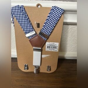 Mudpie Toddler suspenders blue gingham fits up to 5t