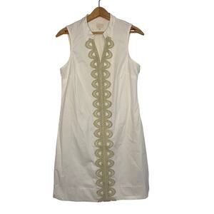 Mudpie White Sleeveless Shift Dress V Neck Classic Vacation Cotton Stretch S