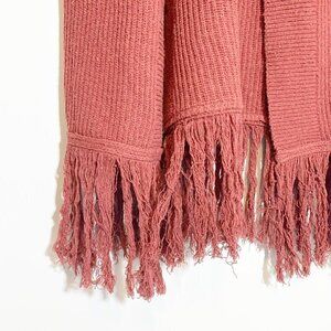Mudpie long sleeve tunic duster length rust red orange boho fringe cardigan sweater