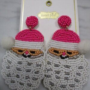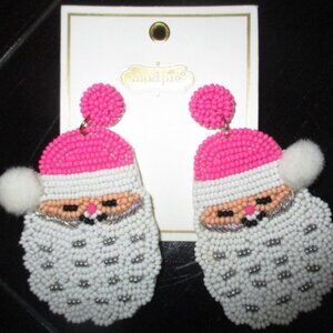 Adorable Santa Clause Pink and wihite beaded earings for Christmas. Brand new from Mudpie purchased at Sweet Elizabeth Jane in Ellicott City Md. From non smoking home and pet free. Tried them on and they are kinda big for old fashioned me, but so cute. Measures 2" in width and 3" in height. Pierced posts.