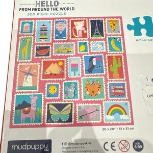 Mudpuppy Hello From Around the World Stamps 500 piece Jigsaw Puzzle Complete