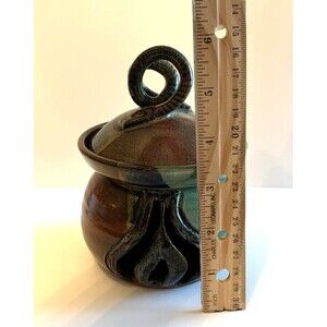 Mudworks USA Pottery Ceramic Jar Cannister Garlic Storage Curly Circle Lid Vents
