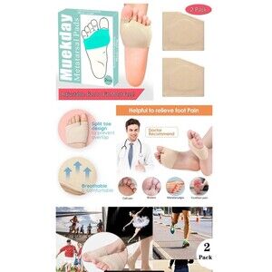 Brand new in box (box shows some shelf wear) Muekday Metatarsal pads for foot pain relief. 2 pieces. No size marked but these are an adult unisex one size. comfortable non-slip fabric. Stored in a smoke-free environment.