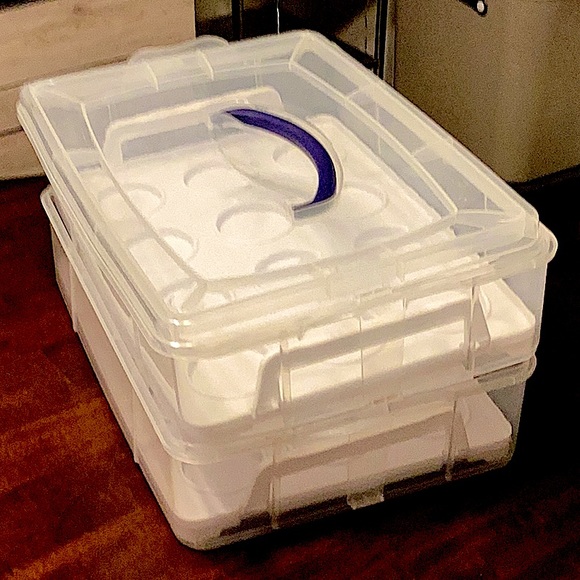 BRAND NEW NEVER BEEN USED, MUFFIN HOLDER CASE WITH LIDS. I PURCHASED THEM IN ENGLAND. BUT MADE IN CHINA. ONE CASE HOLDS 12 MUFFINS. THERE ARE 2 TRAVELING CASES.
