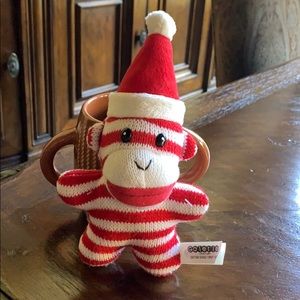 Sock Monkey Coffee Mug w Sock Monkey. Back & Front of Mug have Monkey on it. Medium weight w Double Handles. Galerie Namebrand.