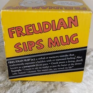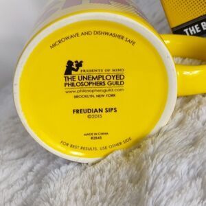 This New in box Freudian Sips yellow and red coffee mug is by The Unemployed Philosophers Guild. Great for the psychology student. All offers welcome.