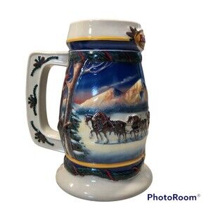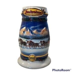 Mug 7" tall BUDWEISER Holiday Stein 2000 Anheuser-Busch Giftware Stein "HOLIDAY IN THE MOUNTAINS". NO CHIPS OR CRACKS NOTED. this product is very good gift for Christmas, birthday WILL BE SHIPPED WIHT IN ORIGINAL BOX AND CERTIFICATE
