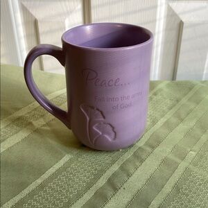 Enjoy your favorite beverage in this elegant purple ceramic mug. Its soothing color and inspirational message make it a perfect addition to your home dining collection.
