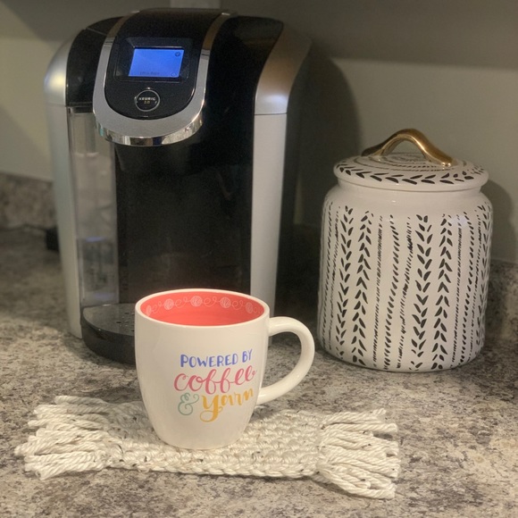 No cuter coaster than this! Give your mug a beautiful rug to rest on! Made with acrylic yarn.