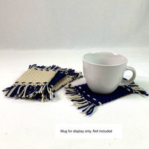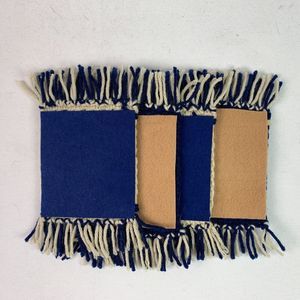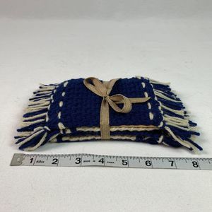 Mug Rugs Coasters Handmade Crochet Navy Blue Beige Fringe Felt Back Set of 4